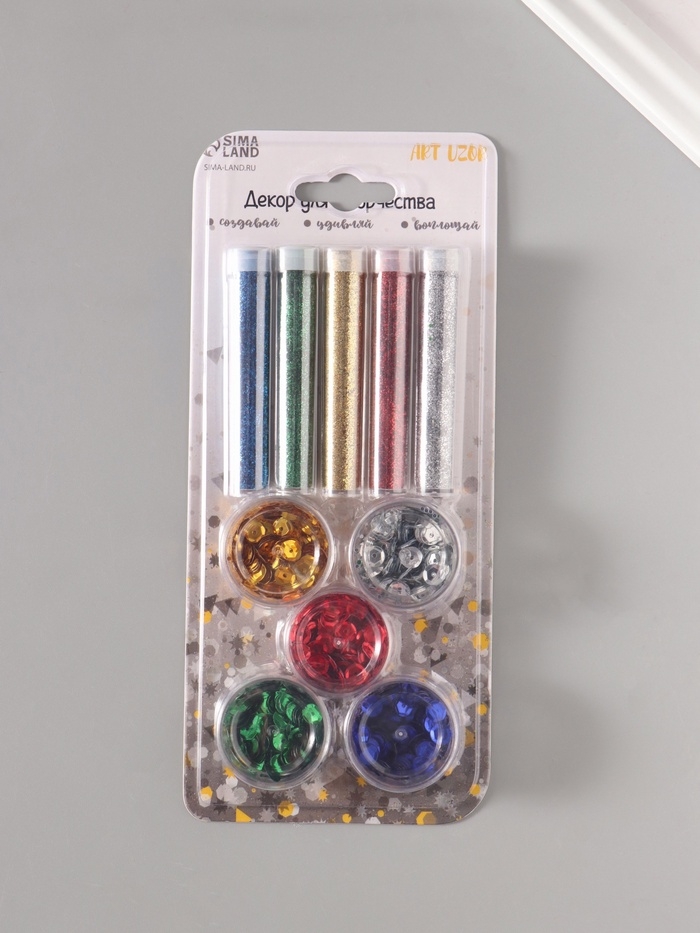 Глиттер "Пудра и пайетки" металлик набор 5х6 гр и 5х5 гр 21,4х9,3 см