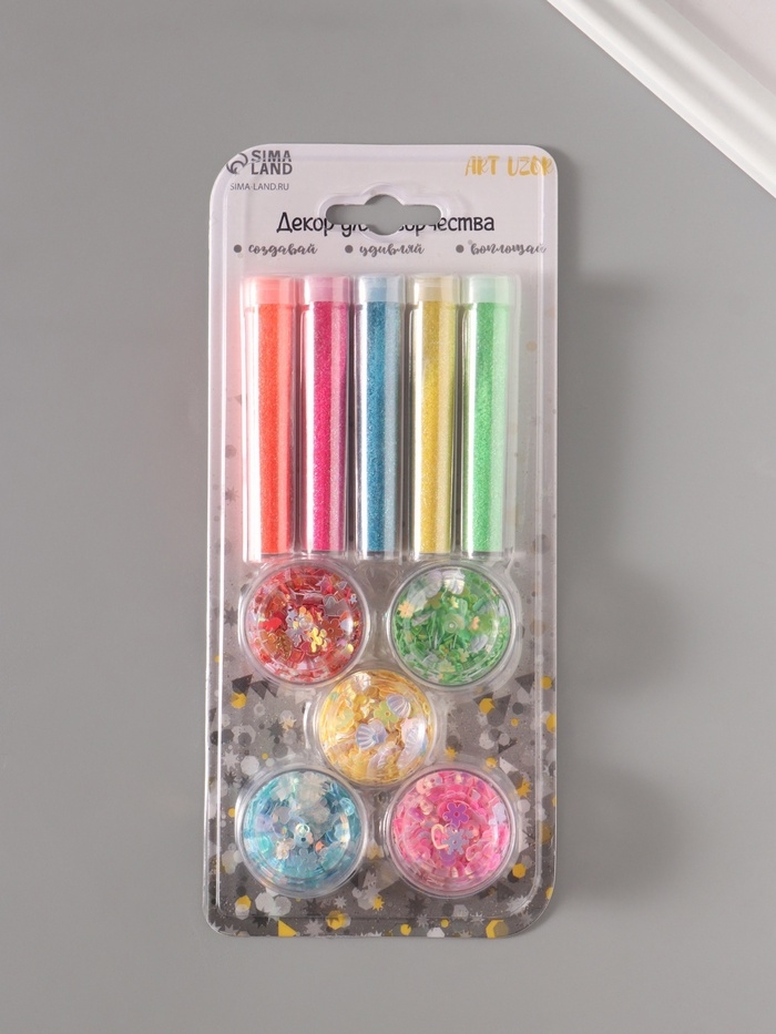 Глиттер "Пудра и пайетки" неон набор 5х6 гр и 5х5 гр 21,4х9,3 см