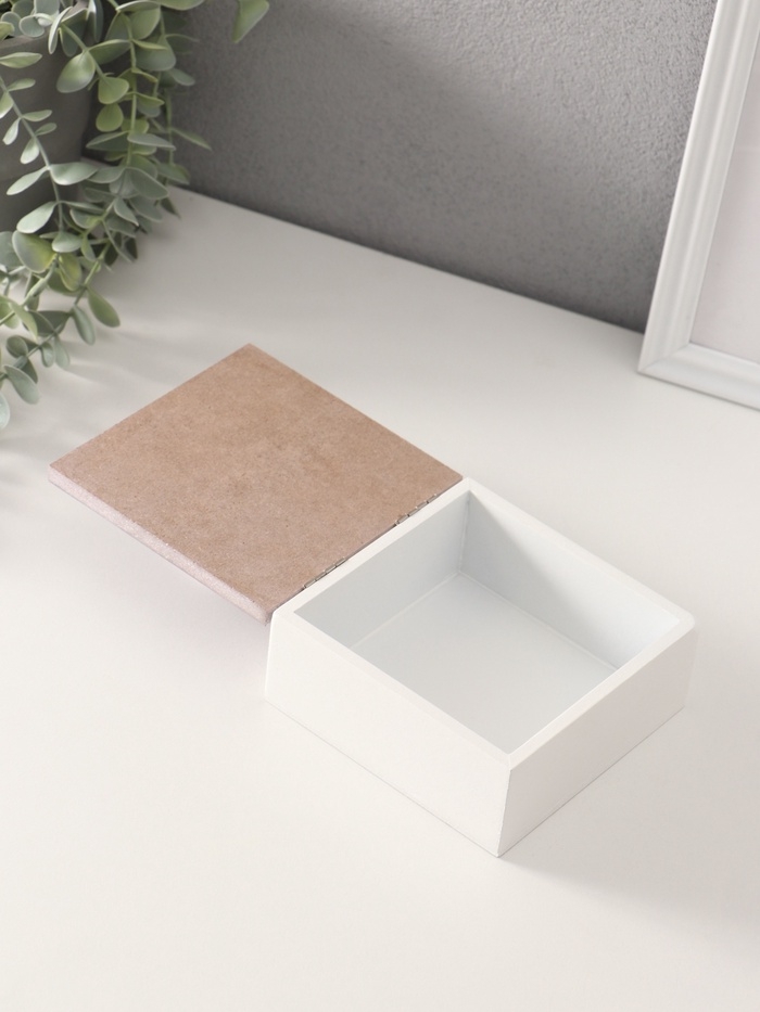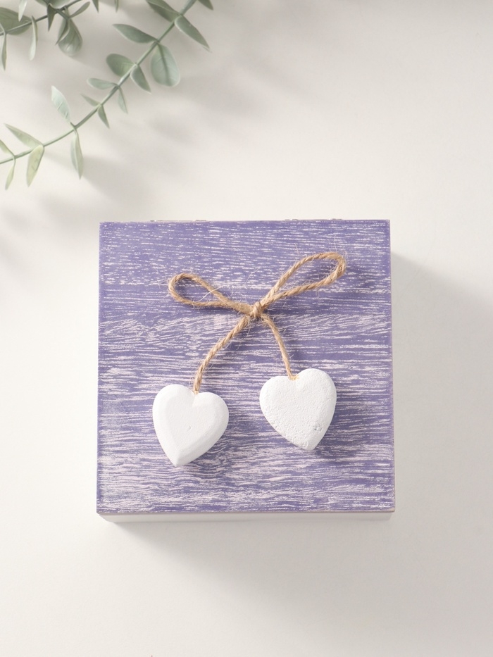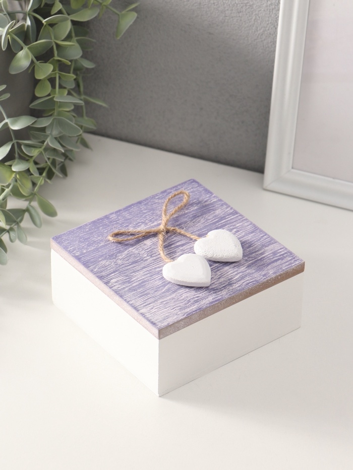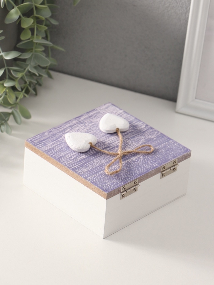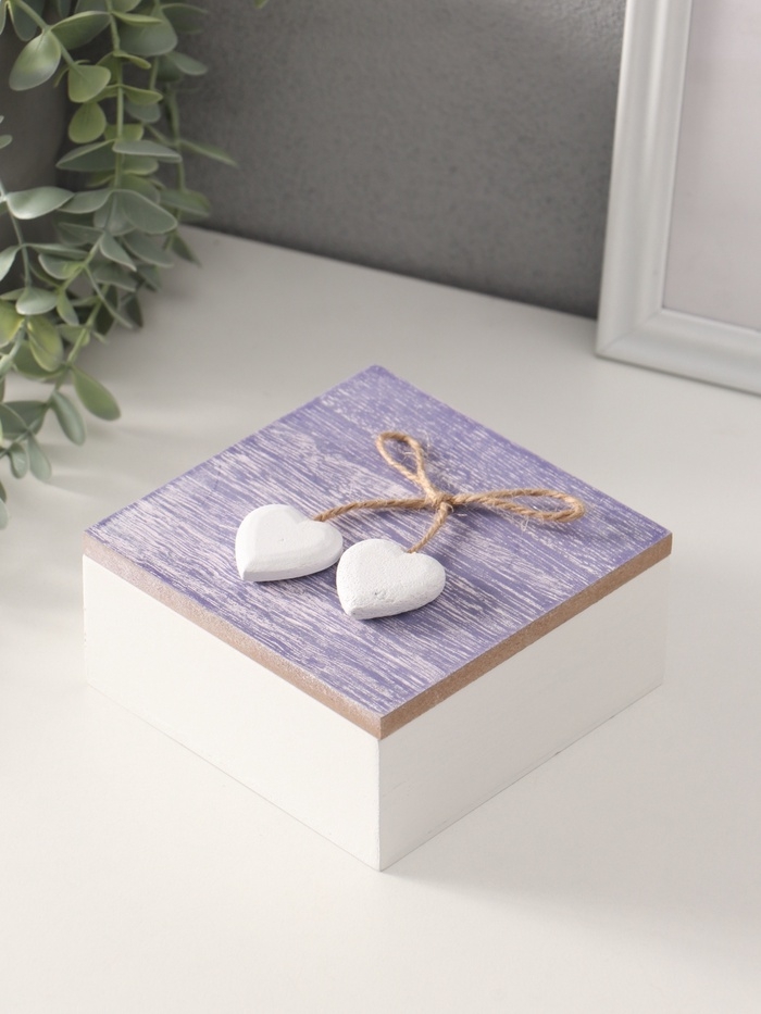 Шкатулка для украшений «Сердечки белые на сиреневом квадрате», дерево, 12×12×5.3 см