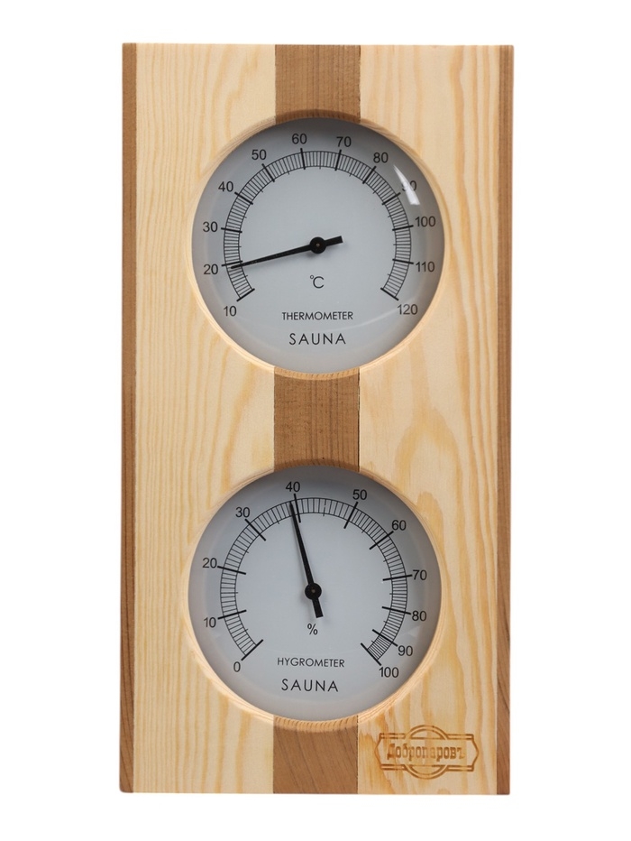 Термометр-гигрометр для бани и сауны, деревянный, красный кедр, "Добропаровъ", в коробке
