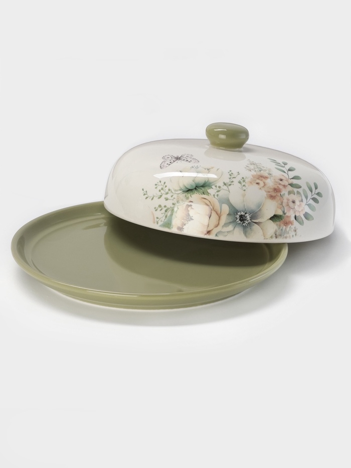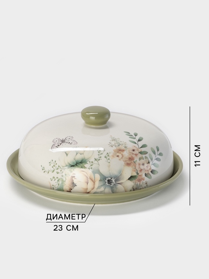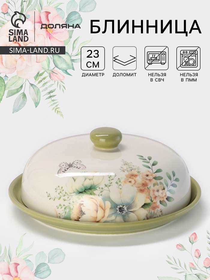 Блинница Доляна «Цветы» d=23, доломит, белая, зелёная