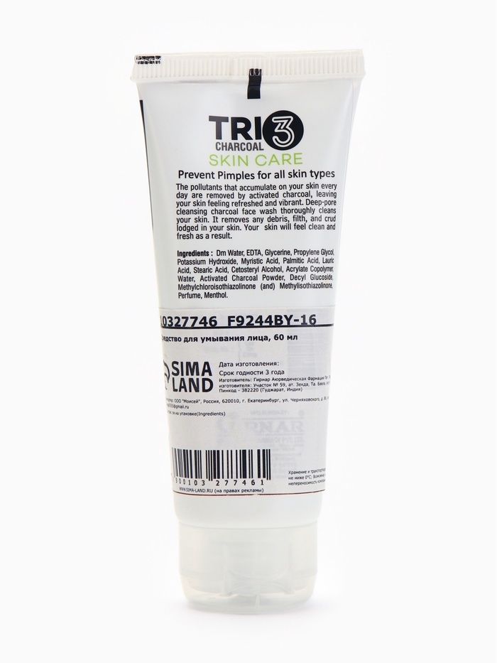 Средство для умывания лица с углём 3 в 1, 60 мл.
