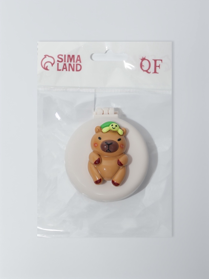 Расчёска массажная «Капибара», складная, с зеркалом, d=6.5 см, белая