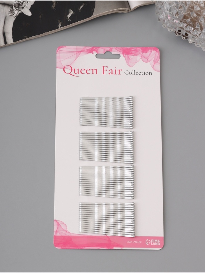 Невидимка для волос «Валери», набор 60 шт., 4.5 см, серебро