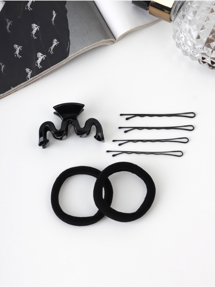 Набор для волос «Вивьен», 2 резинки 5.5 см, 8 невидимок 5.5 см, краб 4.5 см, волна, чёрный