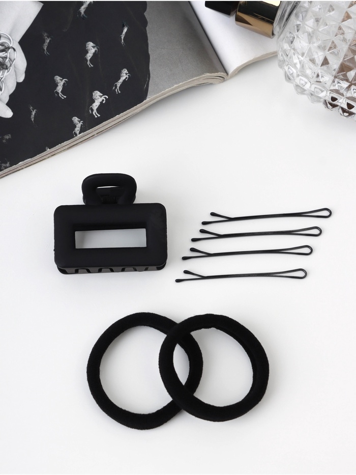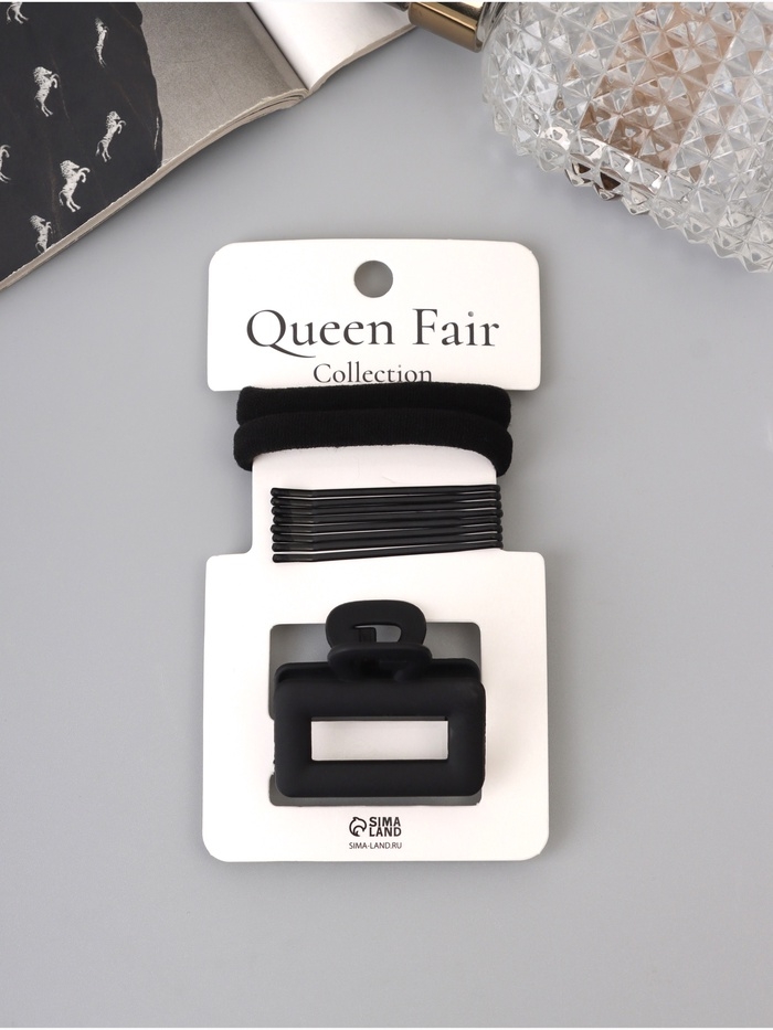 Набор для волос «Вивьен», 2 резинки 5.5 см, 8 невидимок 5.5 см, краб 4.5 см, петля, чёрный