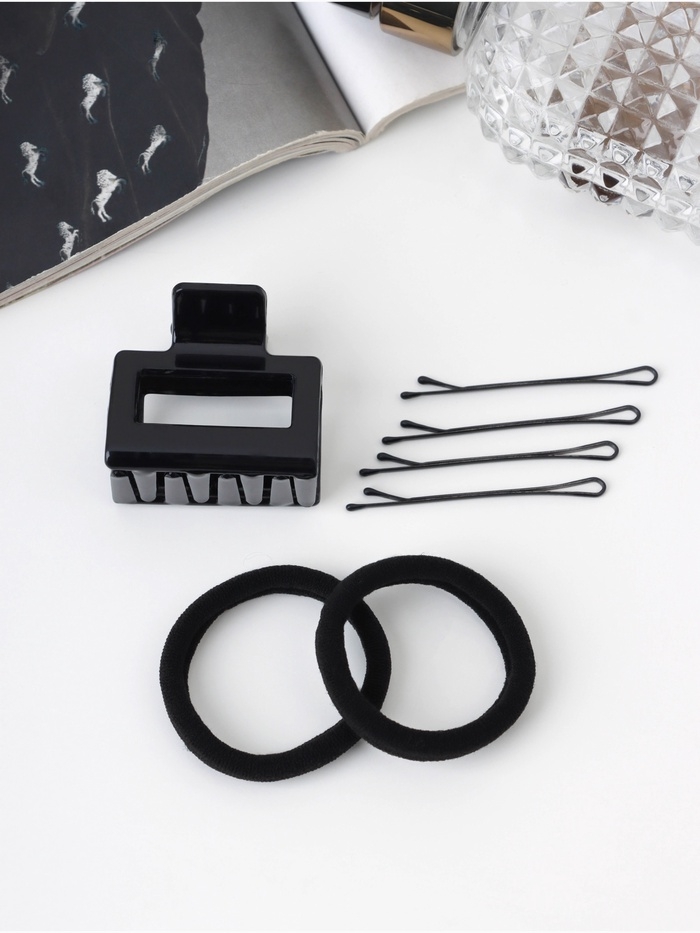 Набор для волос «Вивьен», 2 резинки 5.5 см, 8 невидимок 5.5 см, краб 4 см, объём, чёрный