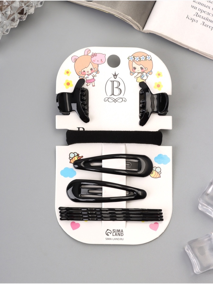 Набор для волос «Венди», резинка 5.5 см, 6 невидимок 5.5 см, 5 см, 2 краба 2.5 см, дуга, чёрный