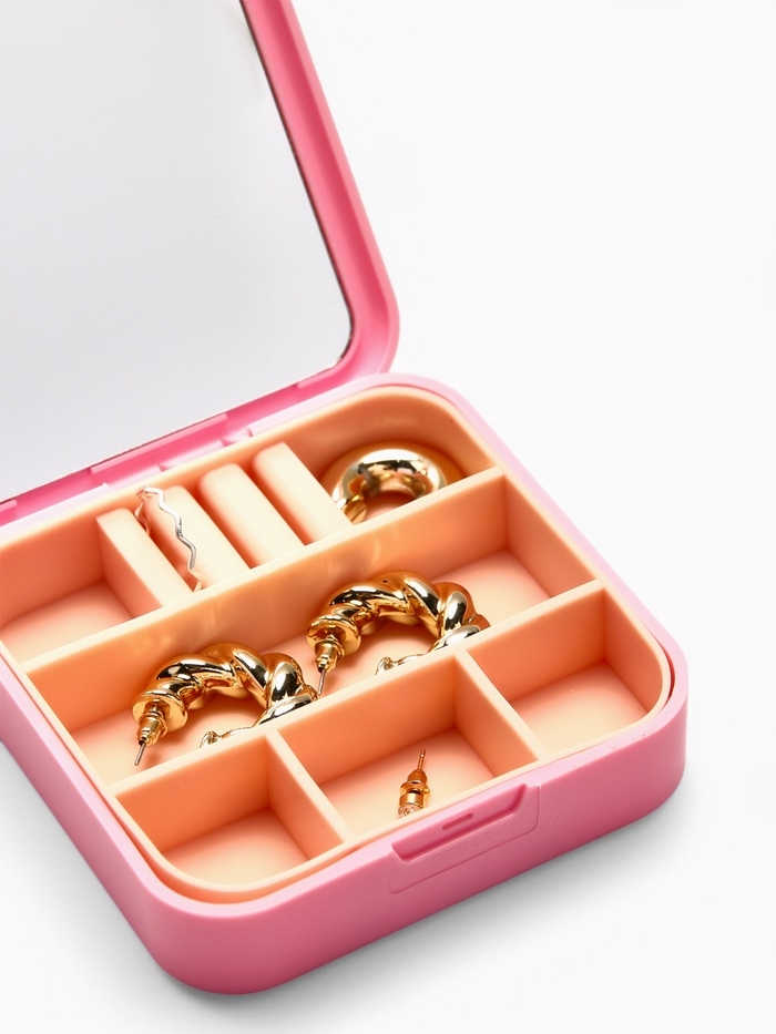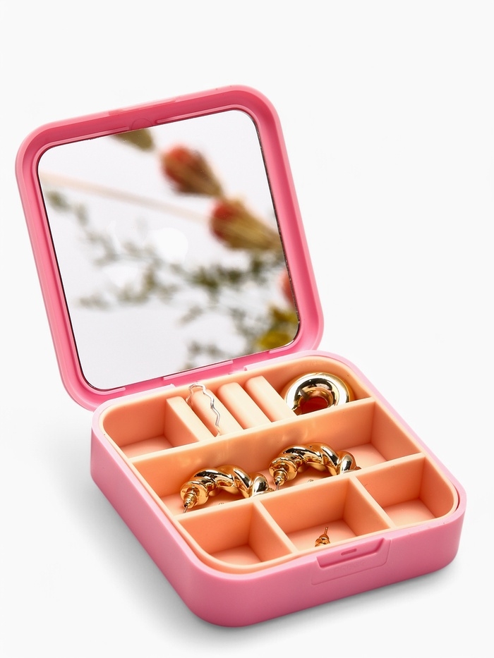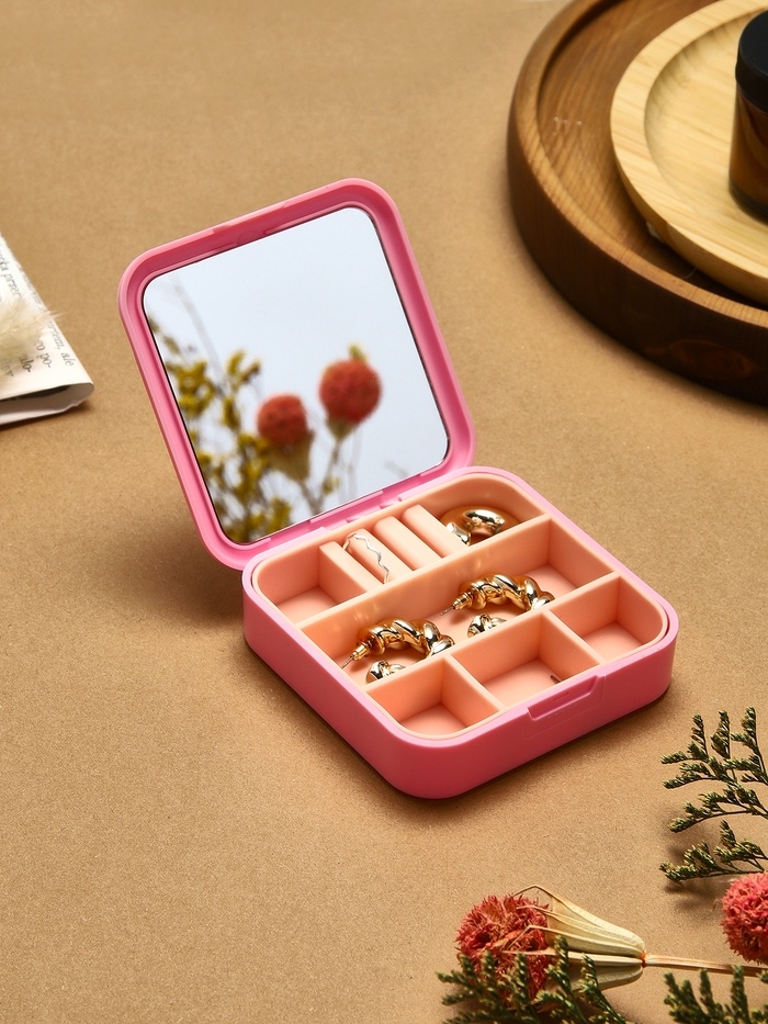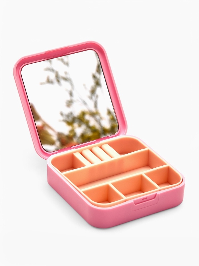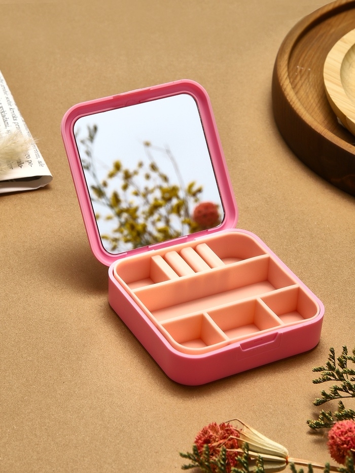 Органайзер для хранения украшений с зеркалом «Шкатулка портативная», 9*9*2,5см, цвет розовый