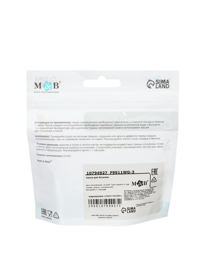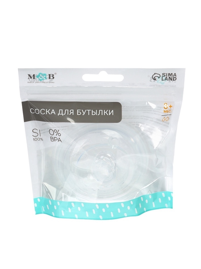 Соска для бутылочки силиконовой M&B, шир.горло, Ø70мм, от 3 мес, антиколиковая