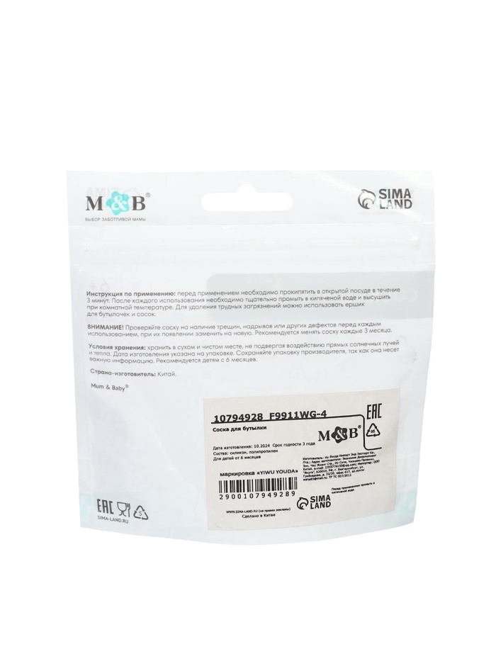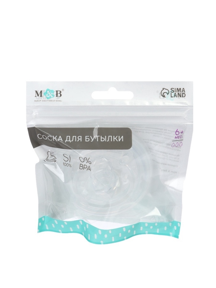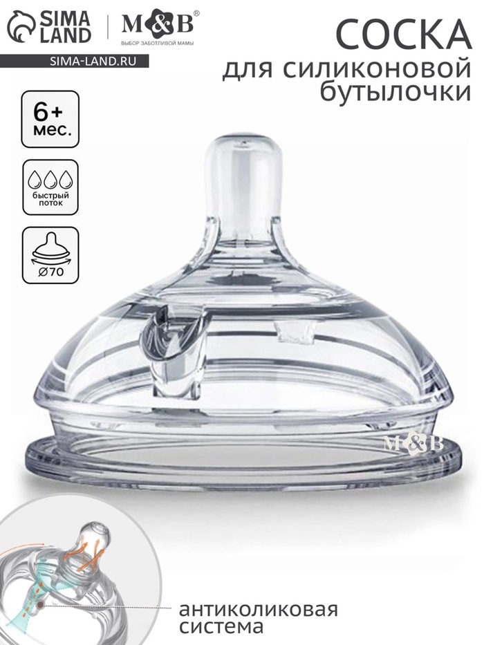 Соска для бутылочки силиконовой M&B, шир.горло, Ø70мм, от 6 мес, антиколиковая