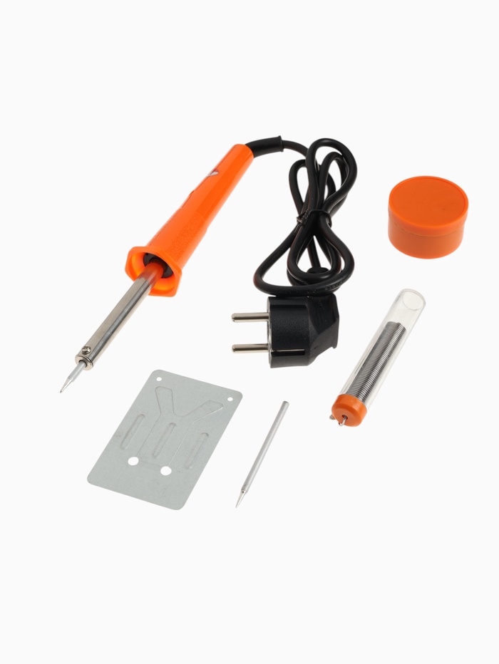 Паяльный набор ТУНДРА, паяльник 30 Вт, подставка, жало, паста, припой, 5 предметов