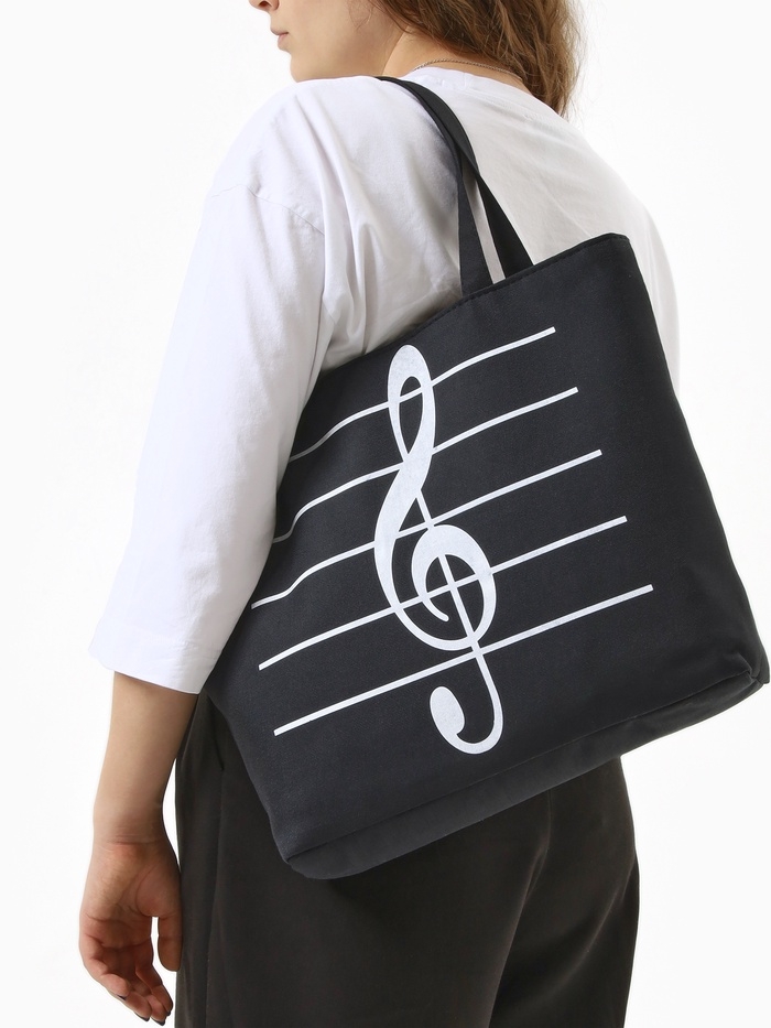 Шопер Музыка, 42*9*32, отдел на молнии, подклад, черный/белый