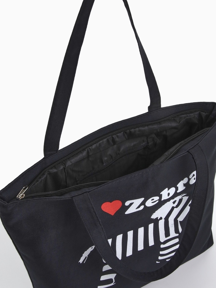 Шопер Зебра, 42*9*32, отдел на молнии, подклад, черный/белый