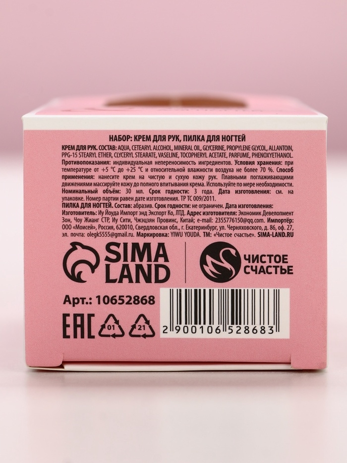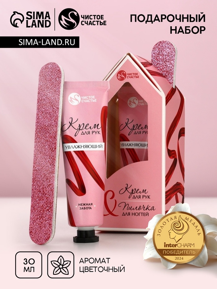 Подарочный набор ЧИСТОЕ СЧАСТЬЕ, крема для рук увлажняющий 30 г, пилка для ногтей