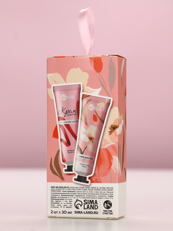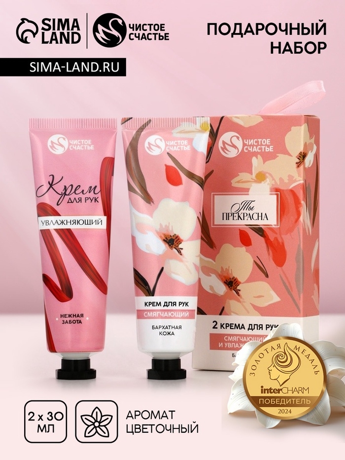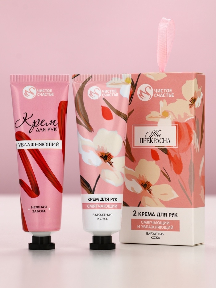Подарочный набор ЧИСТОЕ СЧАСТЬЕ «Ты прекрасна», крема для рук, бархатная кожа, 2×30 г