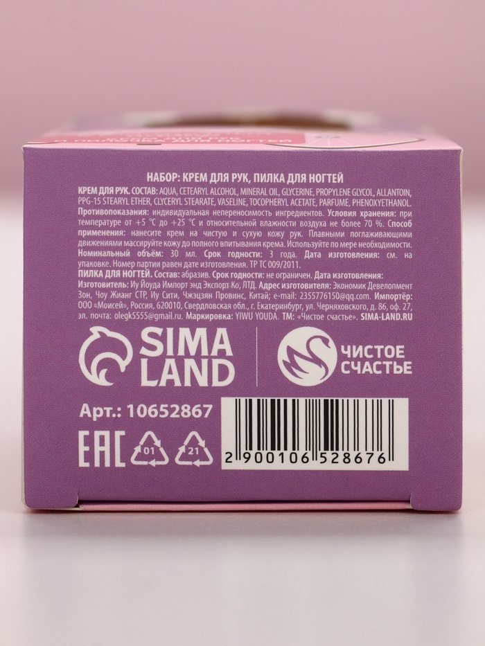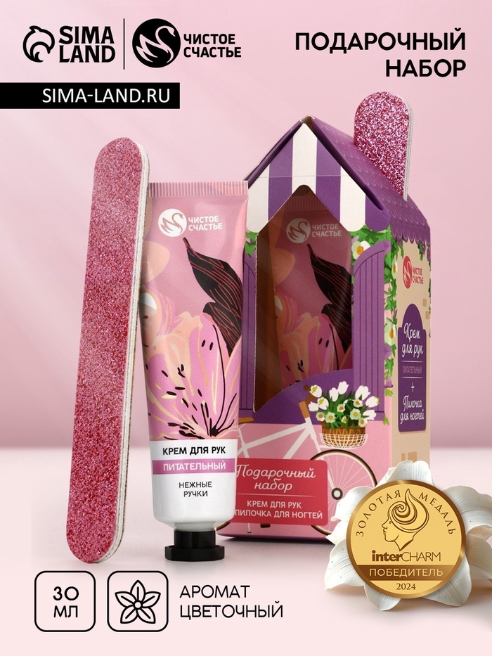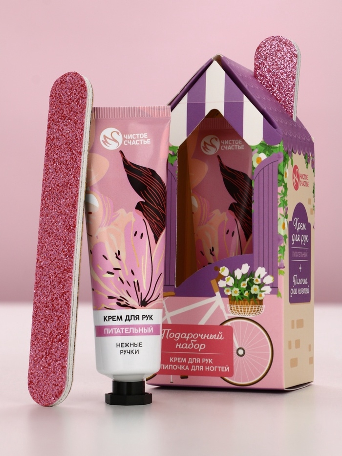 Подарочный набор ЧИСТОЕ СЧАСТЬЕ «Ты чудесна», крема для рук питательный 30 г, пилка для ногтей