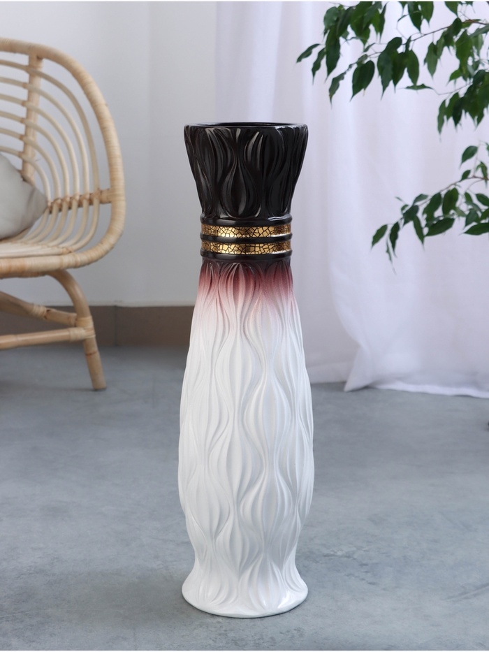 Ваза керамика напольная "Иниго" талия, 59х16 см, бело-бордовый