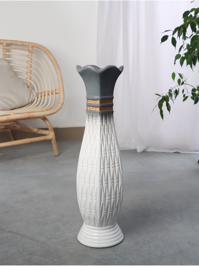 Ваза керамика напольная "Иниго" геометрия, 59х16 см, бело-серый