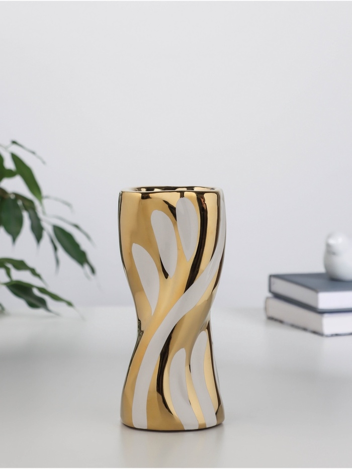 Ваза керамика настольная "Имоджен" 18х7 см, золотисто-белый