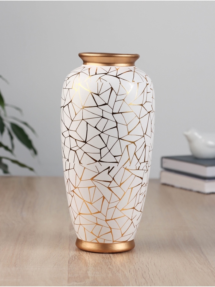 Ваза керамика настольная "Метте" d-7см, 23х9 см, золотисто-белый