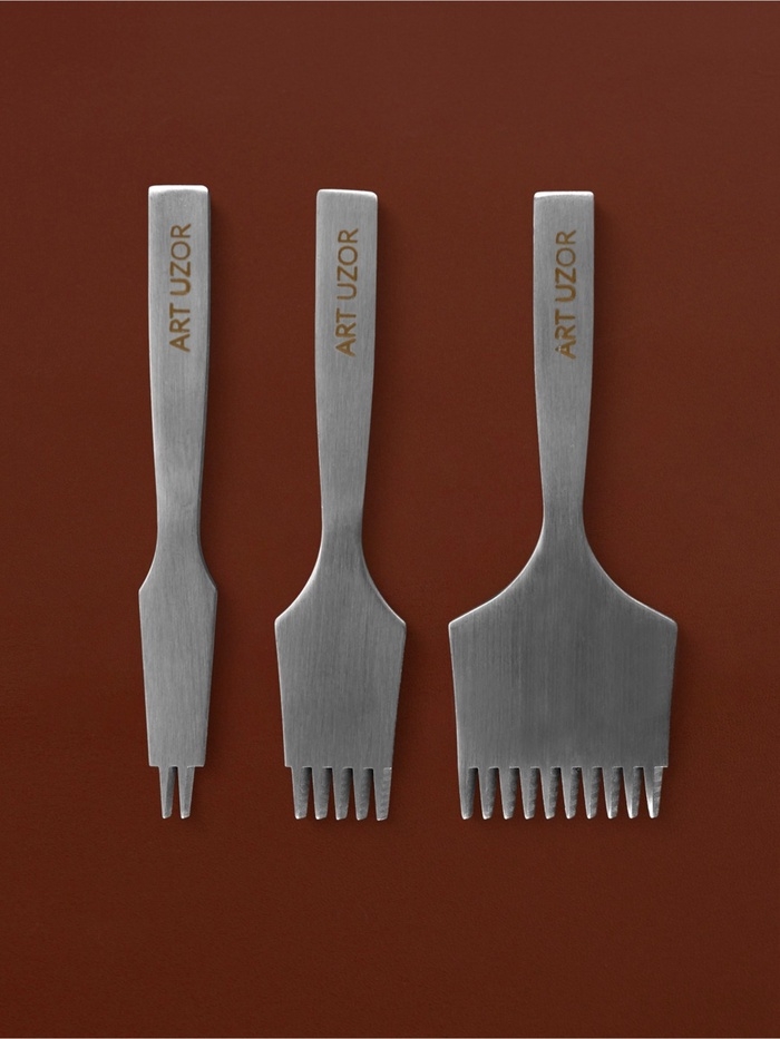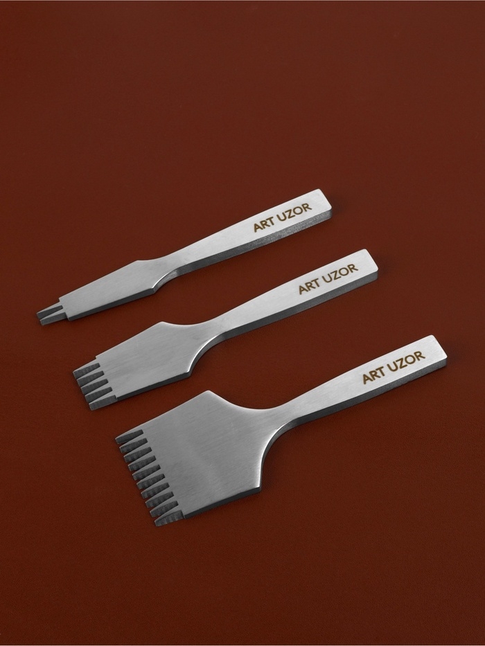 Совершенствуйте свою работу с кожей с помощью набора строчных пробойников для создания французских швов. Комплект включает три инструмента с фиксированным шагом 3.85 мм, что позволяет добиваться безупречной точности при работе над высококачественными изделиями.
