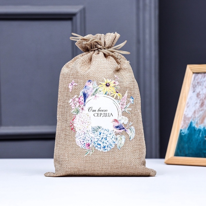 Мешок подарочный с термонаклейкой "От всего сердца" 15,5 x 24 см набор 5шт 9924389