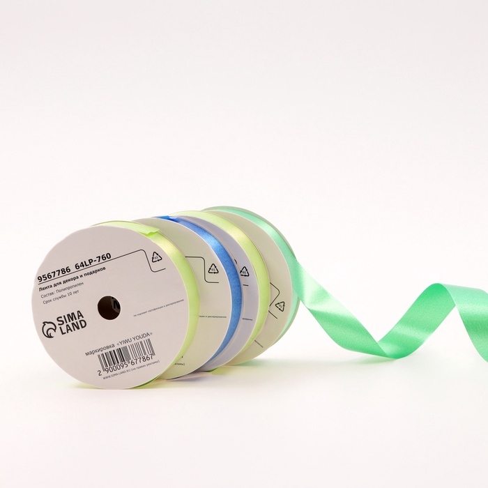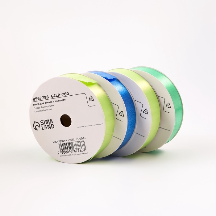Лента для декора и подарков, салатовый МИКС, 2 см х 45 м набор 4шт 9567786