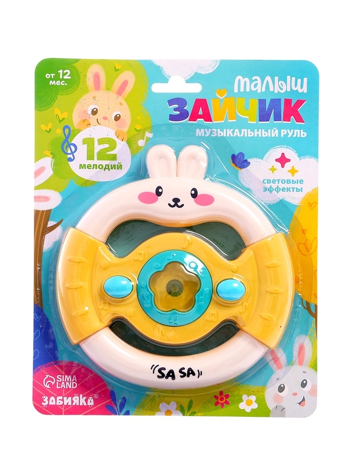 Музыкальный руль «Малыш зайчик», звуковые и световые эффекты, жёлтый