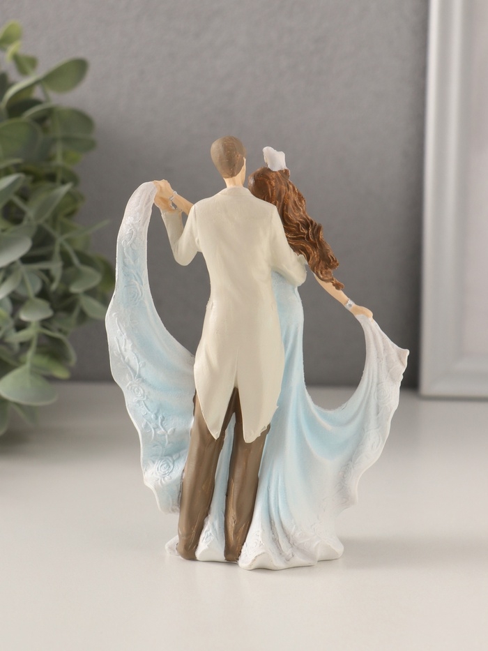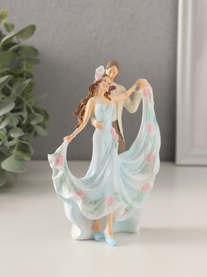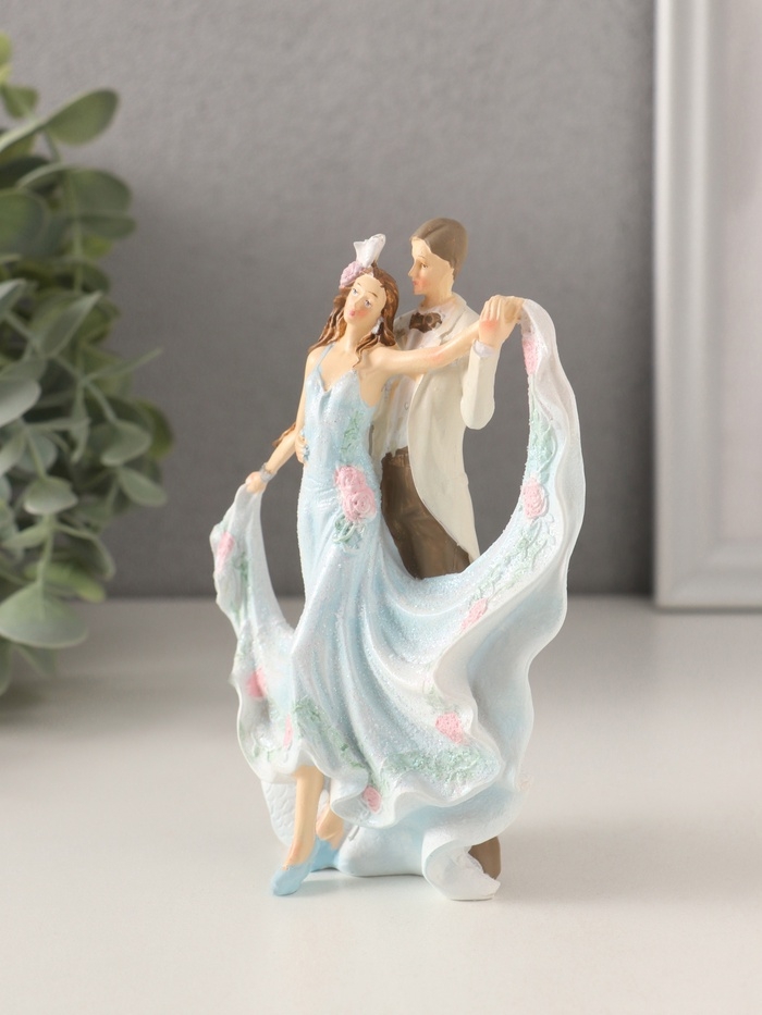 Сувенир полистоун "Танцующая пара" бело-голубой 9,5х5х13 см