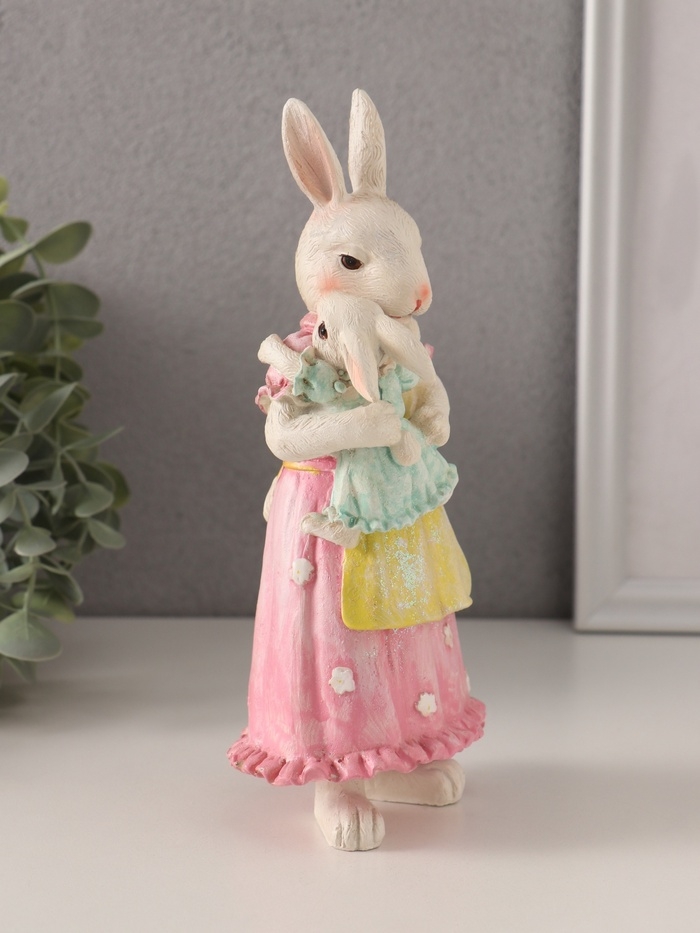 Сувенир полистоун "Мама крольчиха с дочкой, в нарядных платьях" 8,5х7,5х19,5 см