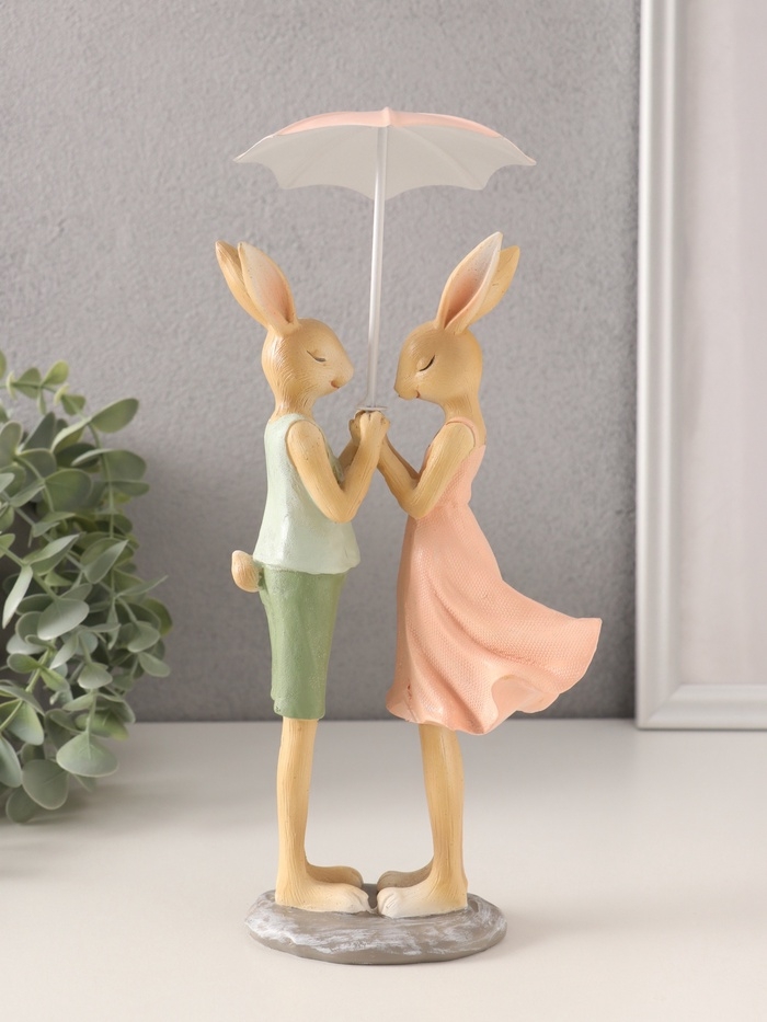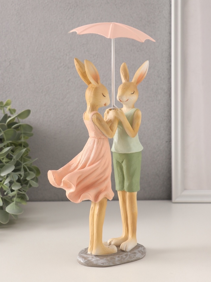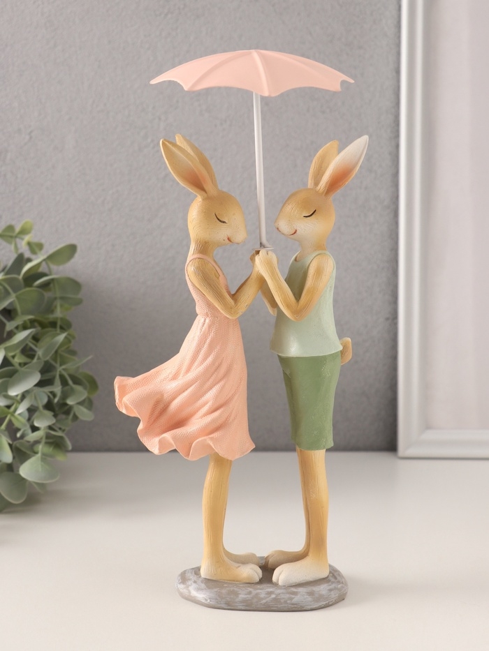 Сувенир полистоун "Романтика. Кролики под зонтом" 12х9,5х25,5 см
