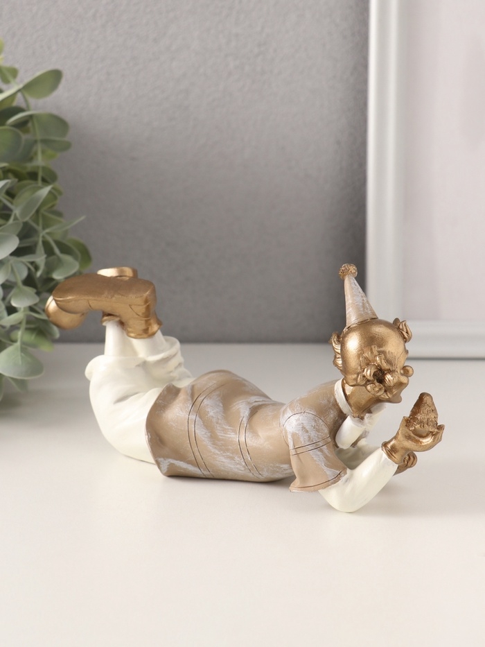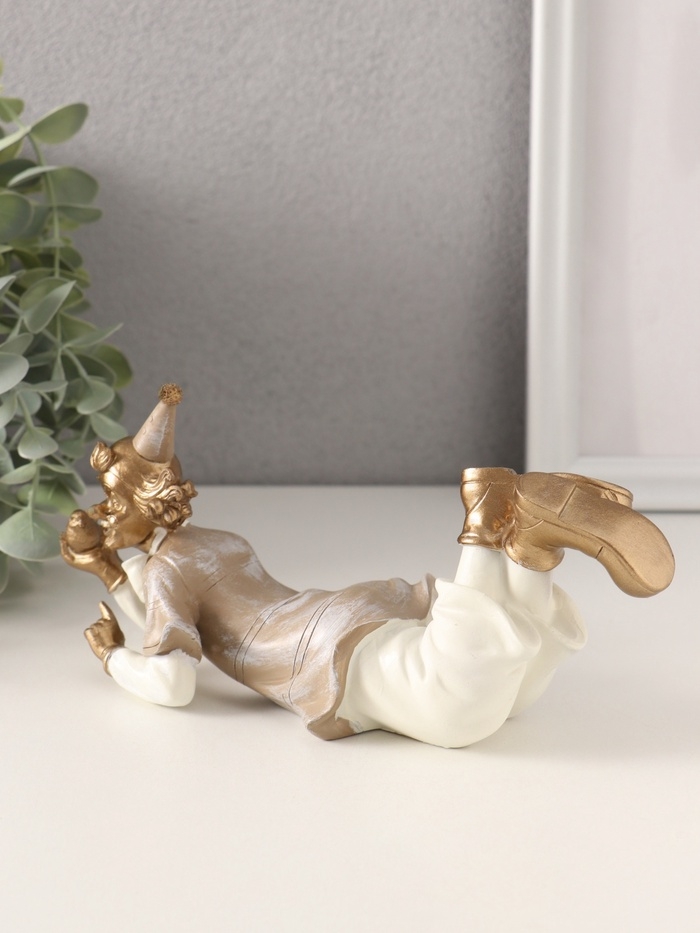 Сувенир полистоун "Клоун с птичкой в ладони" бело-бежевый 20,5х7х8,5 см