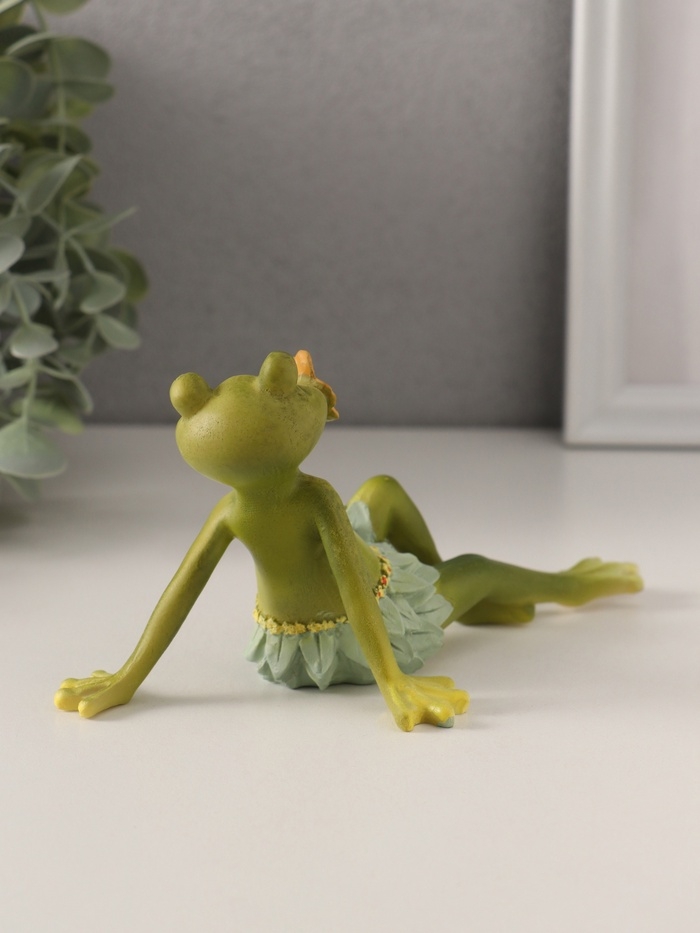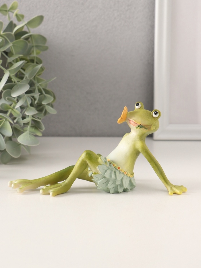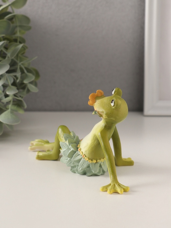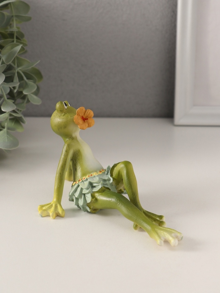 Сувенир полистоун "Лягушонок в набедренной повязке из листьев, с цветком во рту" 15х9,5х8 см 10583
