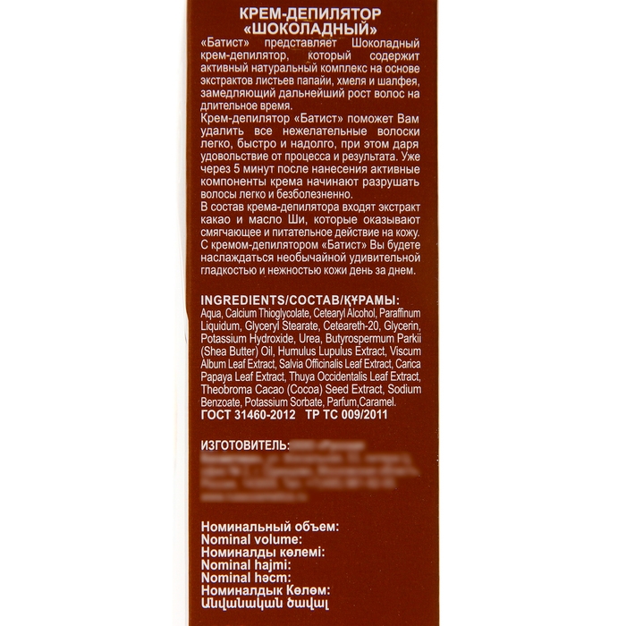 Крем для депиляции «Батист» шоколадный – это идеальный выбор для тех, кто ищет эффективное и приятное средство для удаления волос, которое также заботится о комфорте и здоровье кожи.