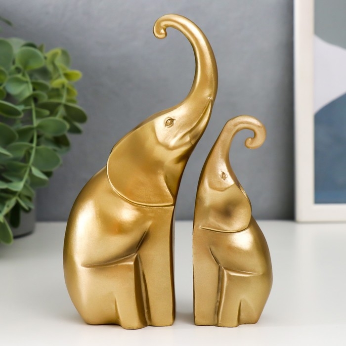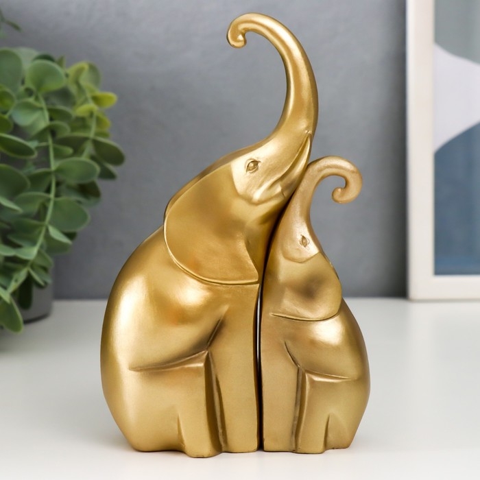 Сувенир полистоун "Два африканских слона" бронза (набор 2 шт) 15,5х10х5 см