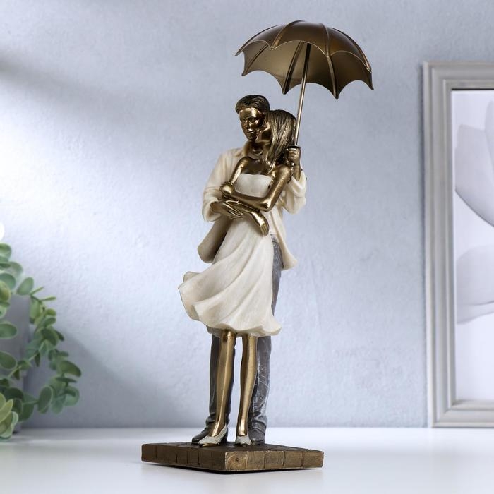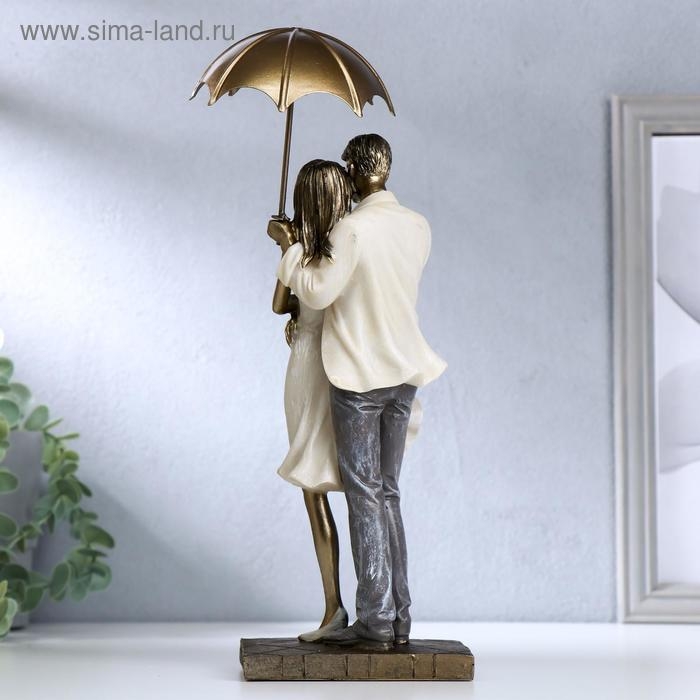 Сувенир полистоун романтика "Прогулка под зонтом" беж 30,5х9х11 см