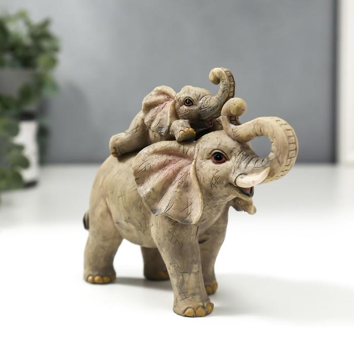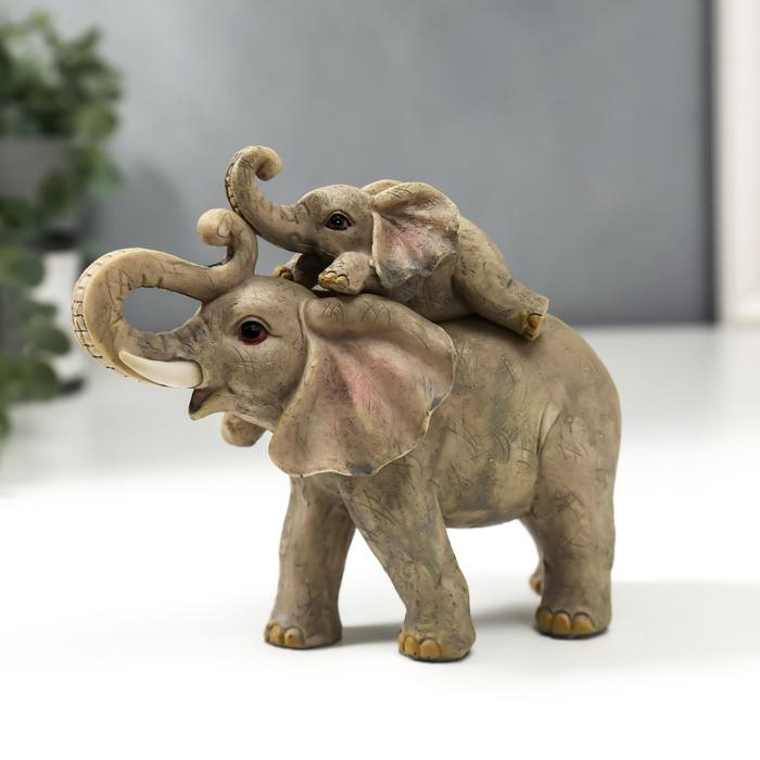 Сувенир полистоун "Слон и слонёнок" набор 2 шт 12,5х6,5х14,5 см