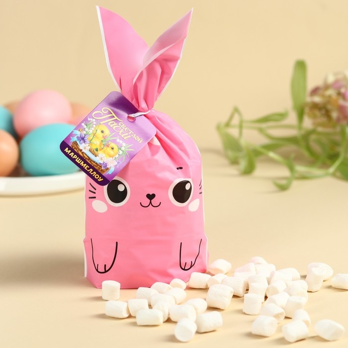 Маршмеллоу в пакете розовый зайка «Светлой Пасхи», 55 г.