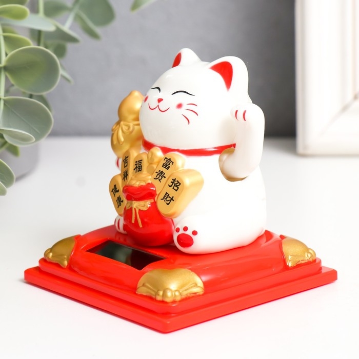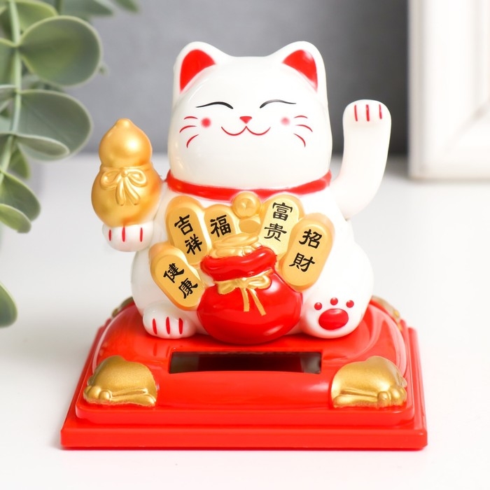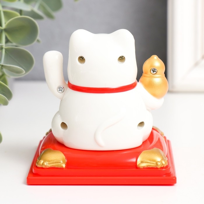 Маятник пластик от солнечной батареи "Белый Манэки-нэко с тыквой горлянкой" 7х7х7,5 см