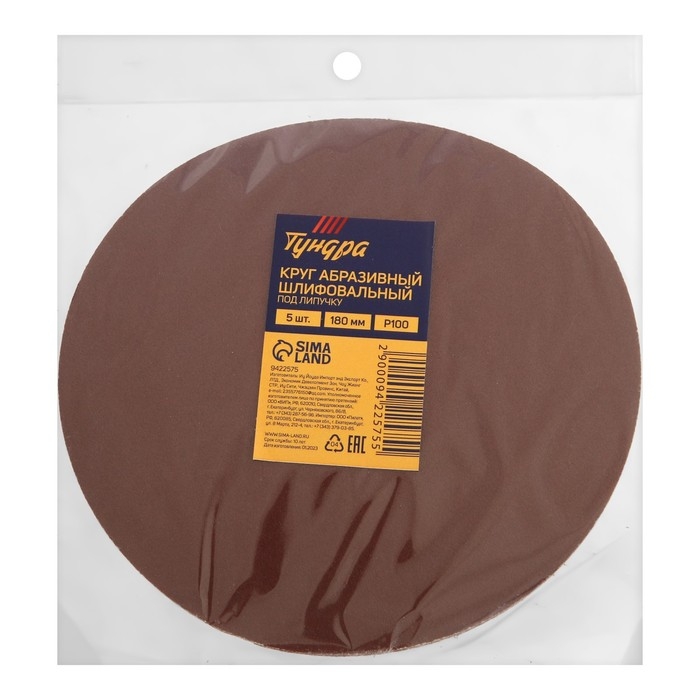 Круг абразивный шлифовальный под "липучку" ТУНДРА, 180 мм, Р100, 5 шт.