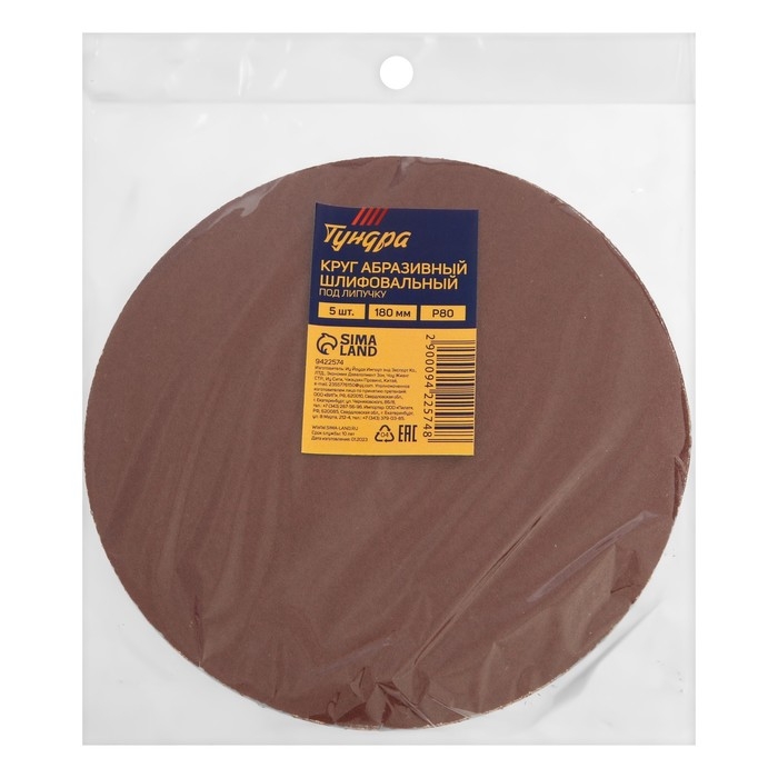 Круг абразивный шлифовальный под "липучку" ТУНДРА, 180 мм, Р80, 5 шт.