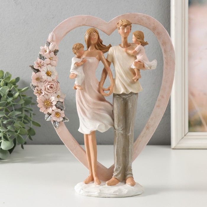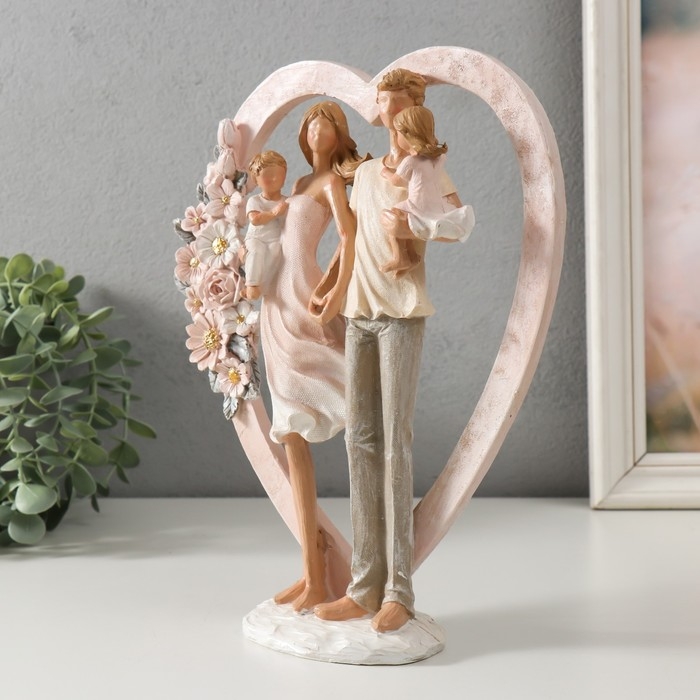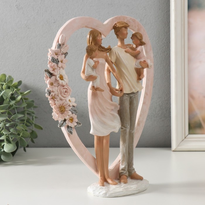 Сувенир полистоун "Семья у сердца с цветами" 22х7х26,5 см