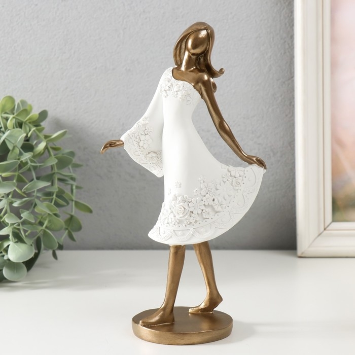 Сувенир полистоун "Девушка в белом платье с цветами" 12х8х23 см