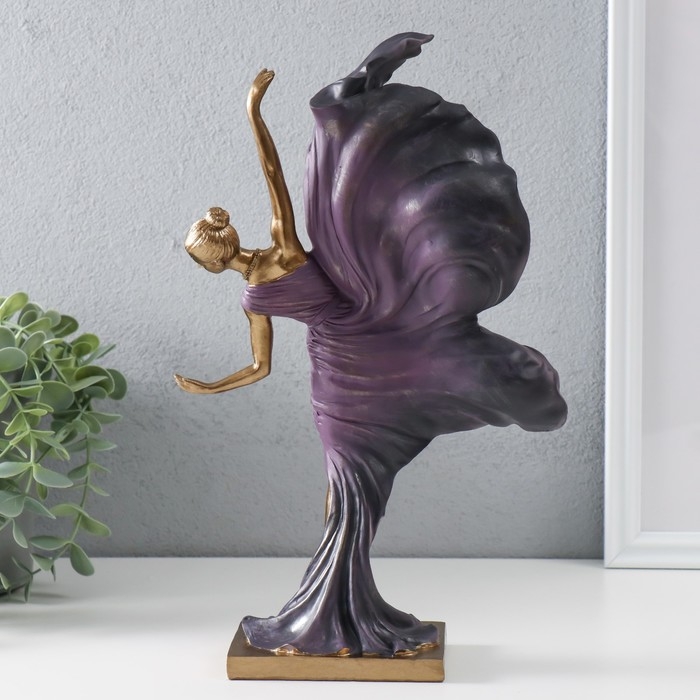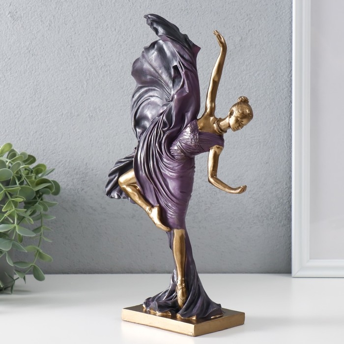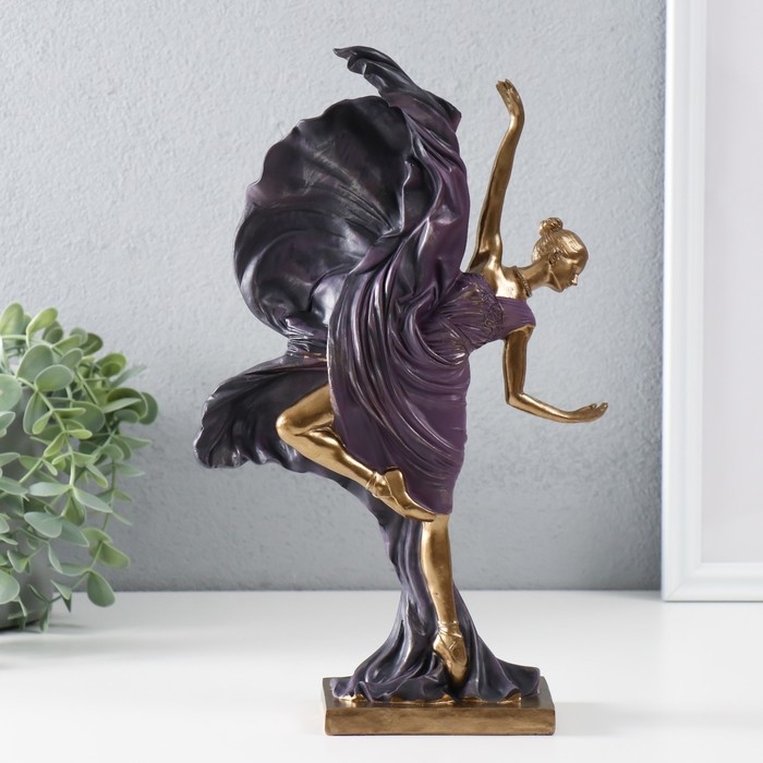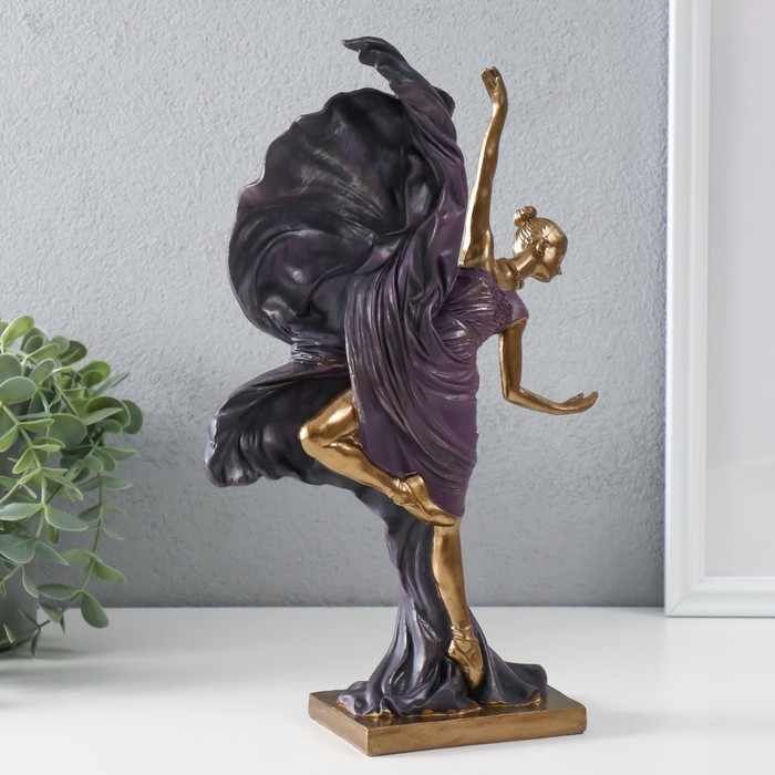 Сувенир полистоун "Балерина в летящем фиолетовом платье" бронза 19х7,5х30,5 см