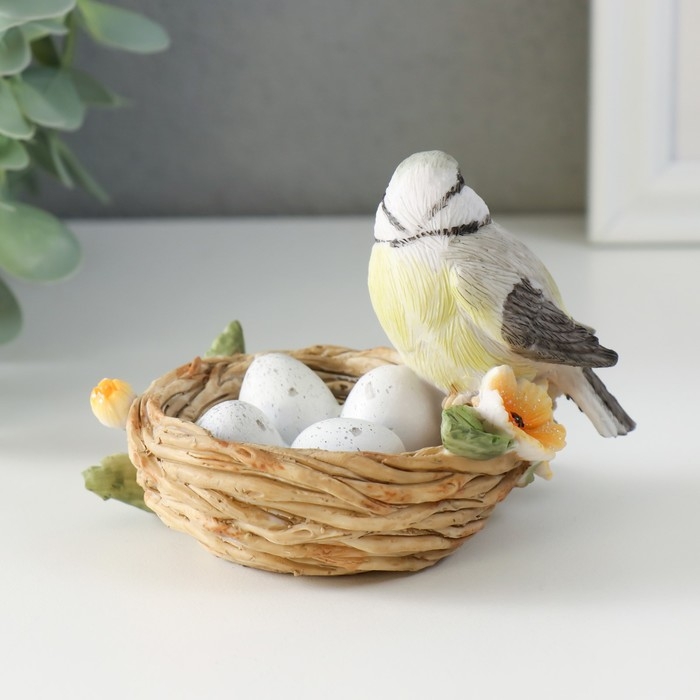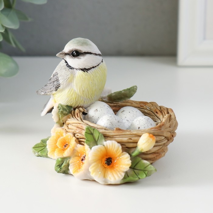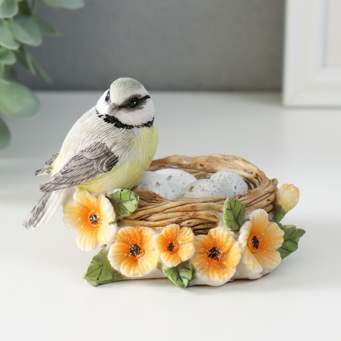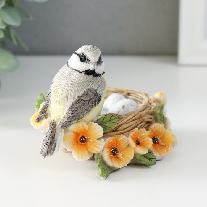 Сувенир полистоун "Синичка в гнезде, с цветами" 11х8х7 см