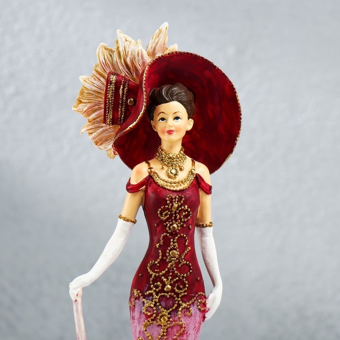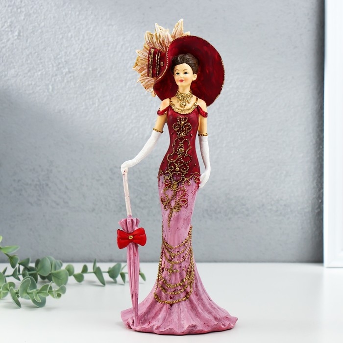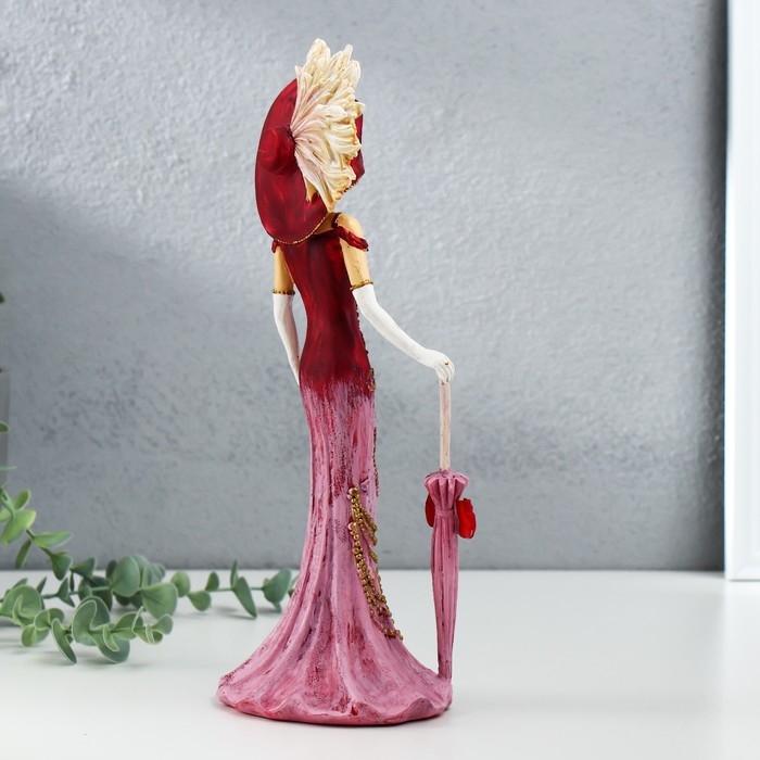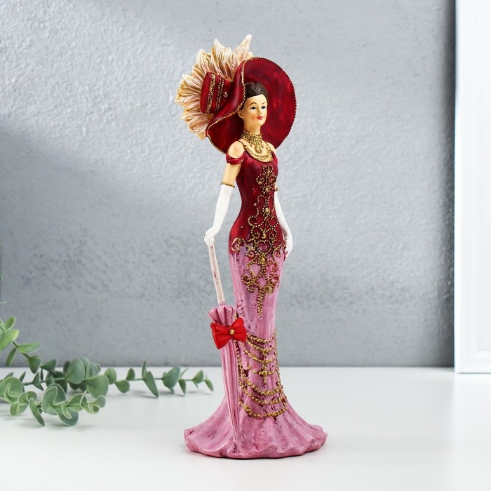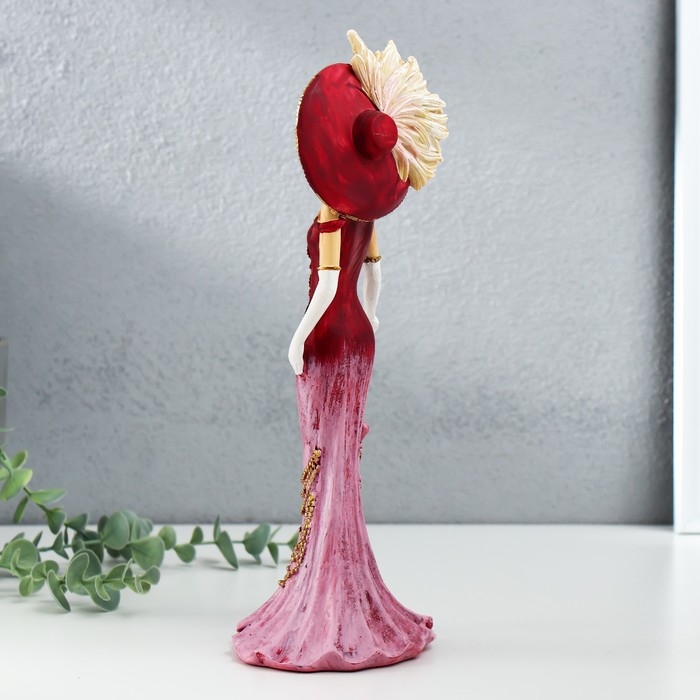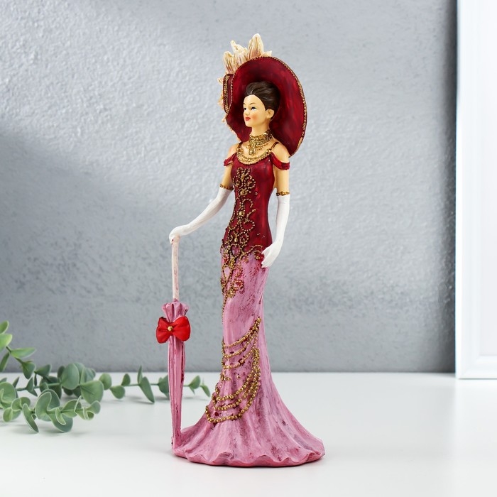Сувенир полистоун "Леди в розовом платье, в шляпе, с зонтом" 11,5х9,5х28,5 см
