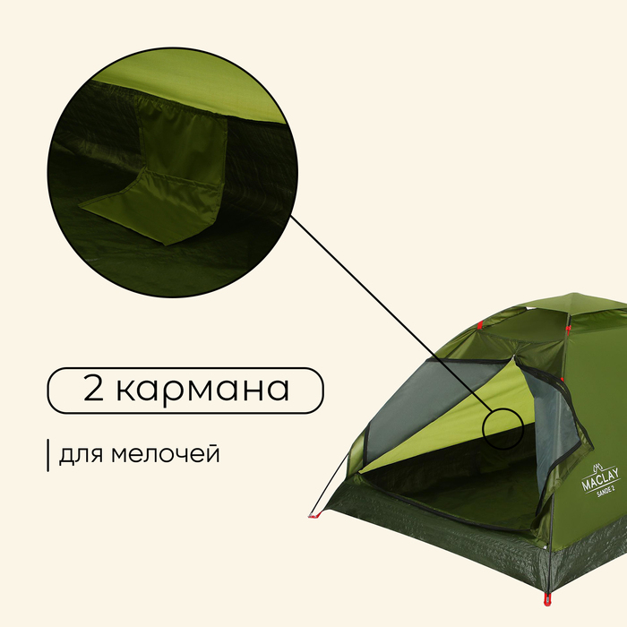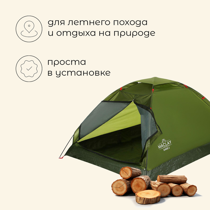 Палатка туристическая Maclay SANDE 2, р. 205х150х105 см, 2-местная, однослойная