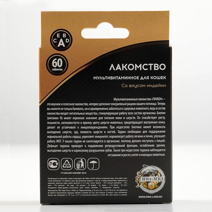 Лакомство для кошек "Пижон. Здоровье кожи и шерсти" со вкусом индейки, 60 таб
