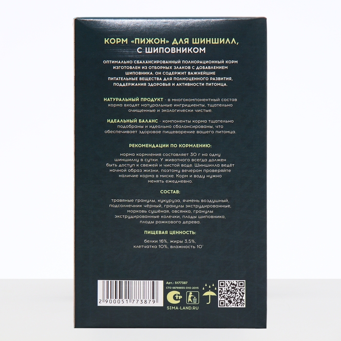 Корм "Пижон" для шиншилл с шиповником, 400 г – это надежное и качественное решение для ваших шиншилл, обеспечивающее их здоровьем и энергией. Подарите своим питомцам здоровье и радость, выбрав этот великолепный корм!